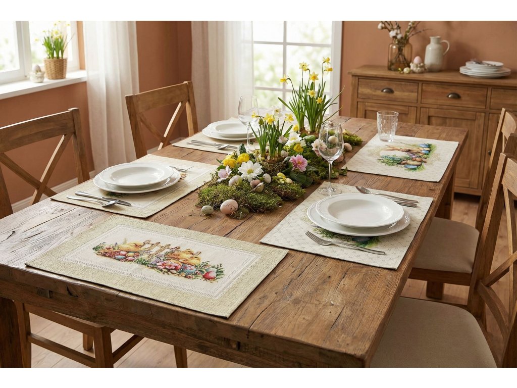 Dopřejte si kousek české kvality a tradice s tímto krásným gobelínovým prostíráním, které přinese do vašeho domova kouzlo Velikonoc a jara.