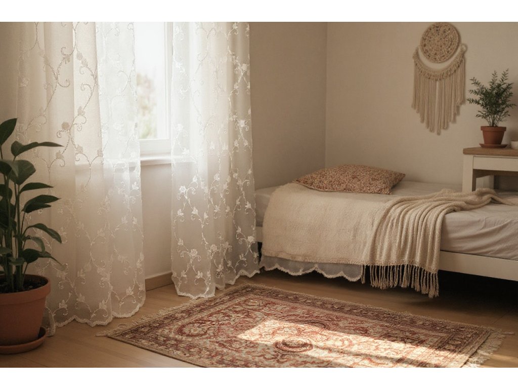Vyšívaná záclona s květy