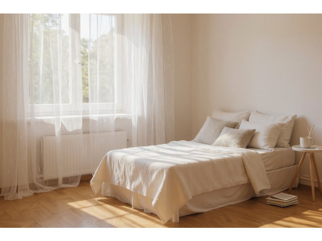 Žakárová záclona vhodná do obývacích pokojů a ložnic.