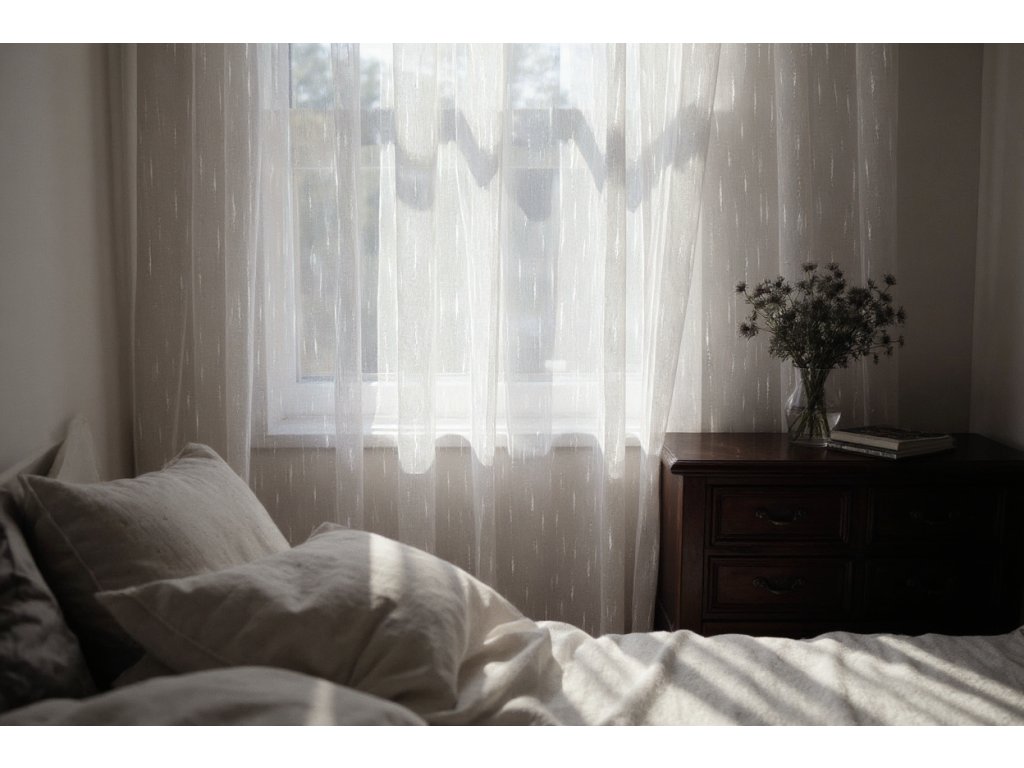 Žakárová záclona vhodná do obývacích pokojů a ložnic.
